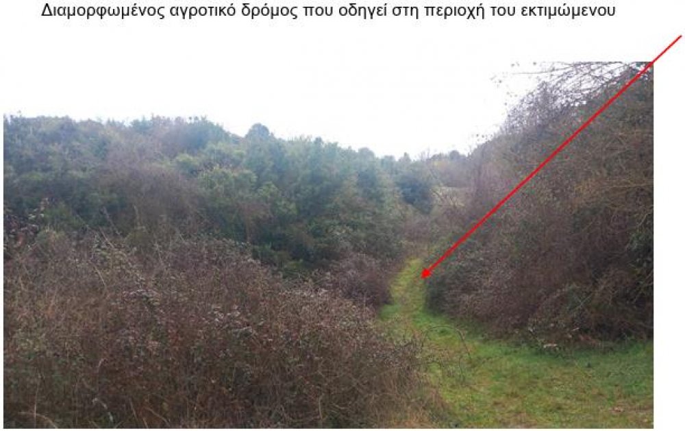 Σύμφωνα με την αυτοψία στη περιοχή διαπιστώθηκε ότι το γήπεδο δεν είναι οριοθετημένο στο έδαφος με περίφραξη, περιλαμβάνει πυκνώδη βλάστηση και η πρόσβαση εξυπηρετείται από υποτώδης, διανοιγμένη αγροτική οδό, περιορισμένης βατότητας που διέρχεται εντός της δημοτικής έκτασης με την οποία συνορεύει το εκτιμώμενο αγροτεμάχιο.