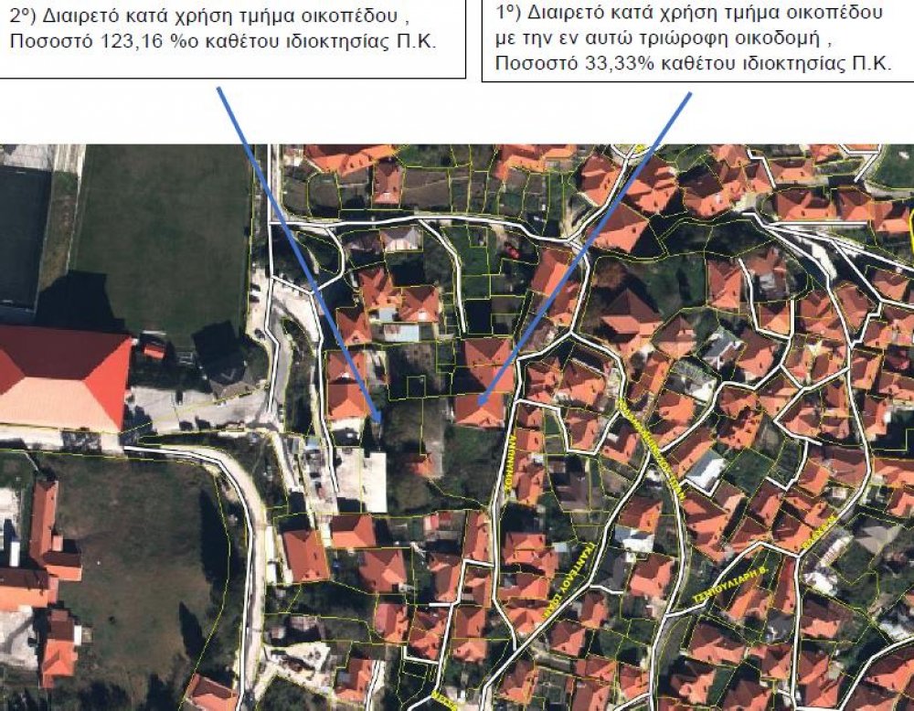 Σύμφωνα με το κτηματολόγιο το όλο οικόπεδο έχει επιφάνεια 1087,70 μ2 και αριθμό ΚΑΕΚ: 202010322025/0/0.